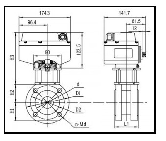 Q971F電動(dòng)對(duì)夾球閥的外形及安裝尺寸:
