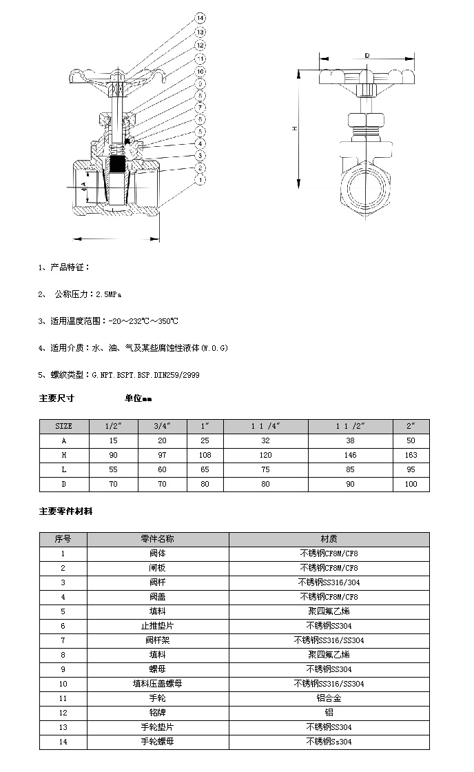 適用介質(zhì):水、蒸汽、油品