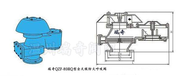 QZF-89RQ瑞奇全天候防火呼吸閥主要是用來滿足儲罐大小呼吸的通氣與阻火要求安裝在儲存甲、乙、丙類液體的儲罐頂上,確保儲罐在超壓時免遭破壞,同時減小儲罐內介質的蒸發(fā)損耗。是集阻火器與呼吸閥為一體。它是石化儲罐必備安全設備,其最大優(yōu)點是阻火呼吸性能好、重量輕、密封性能好、泄漏量小、耐腐蝕維修方便。