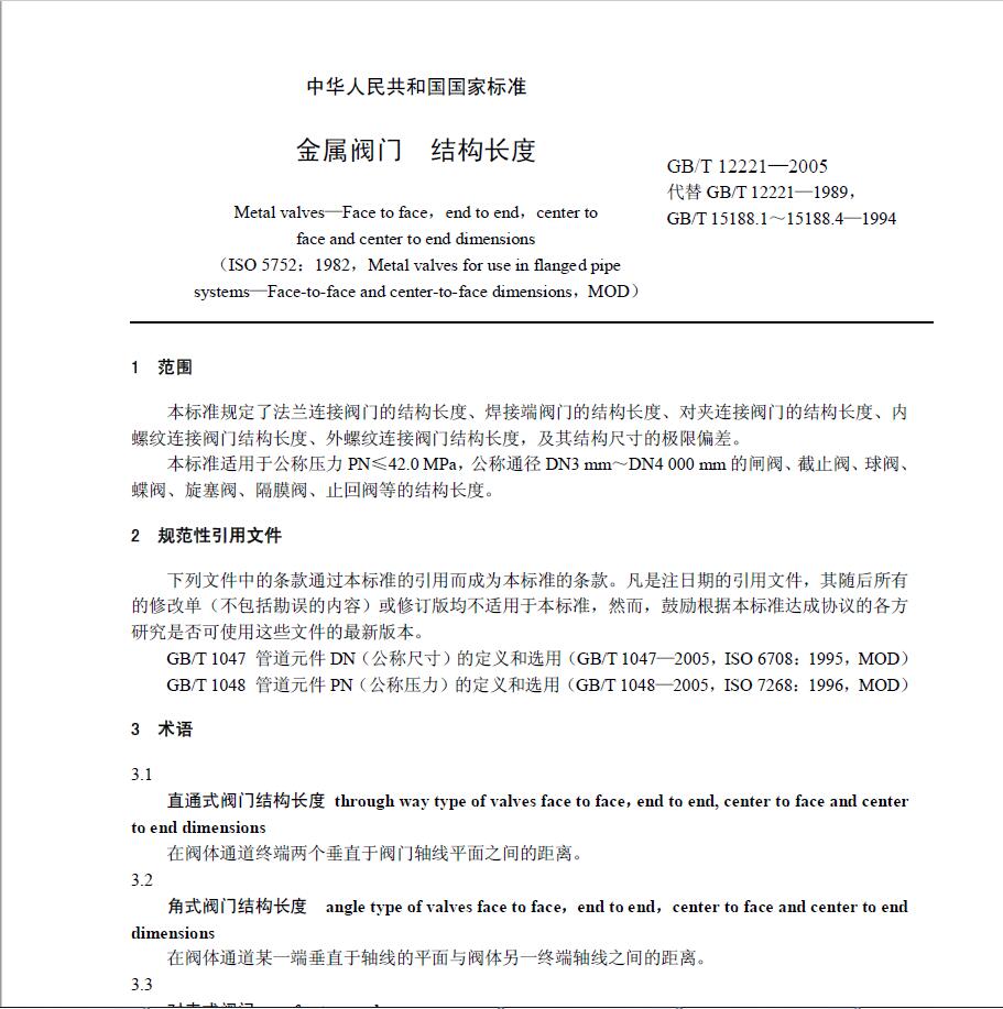 GB12221-2005閥門的結(jié)構(gòu)長度 【下載】